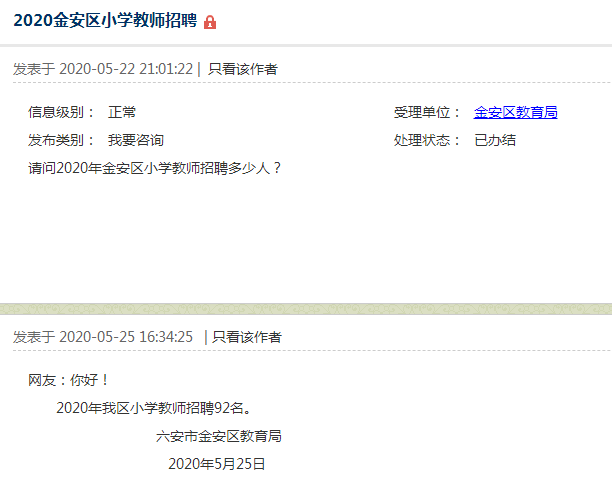 請(qǐng)問2020年金安區(qū)小學(xué)教師招聘多少人?