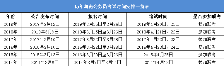 具體時間安排則要以2020年安徽公務員公告為準,歷年安徽省公務員考試時間安排及招錄情況供大家參考(如下圖):