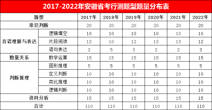 二、安徽省考行測(cè)分值分布